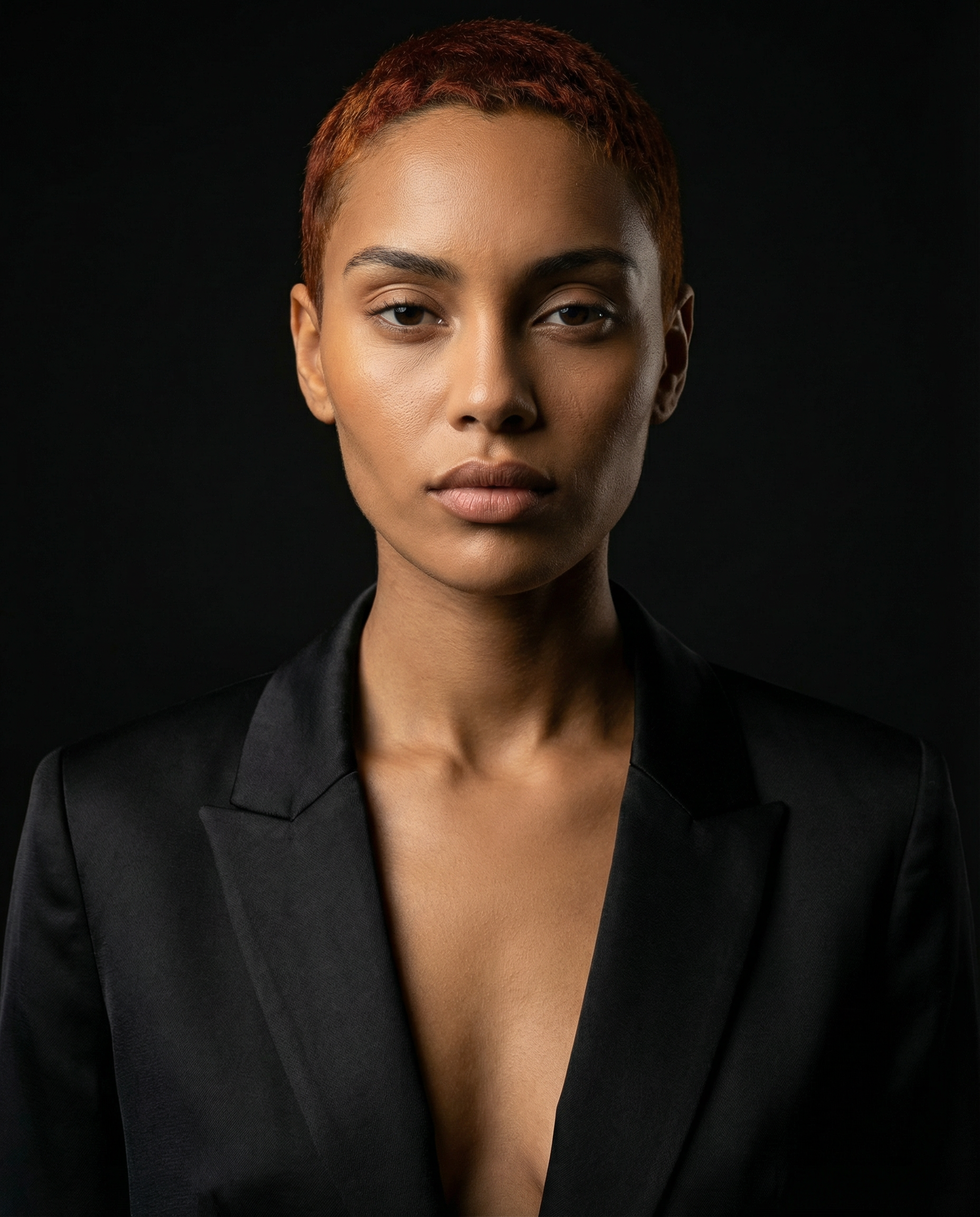 Модель с выразительной костной структурой, чистой кожей и сильным минималистичным типажом. Короткая стрижка усиливает её современность и делает образ графичным и запоминающимся.